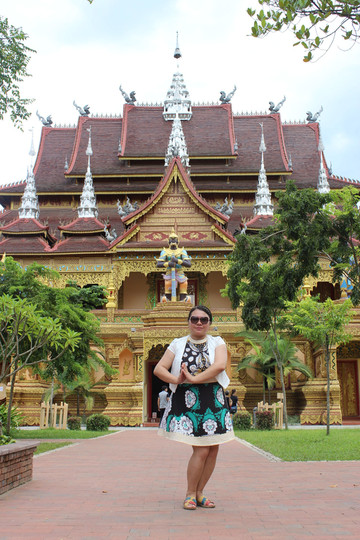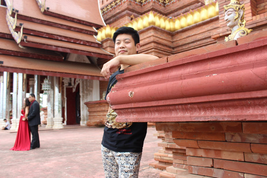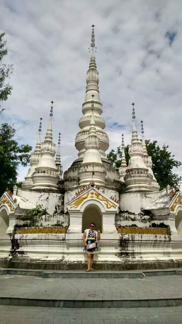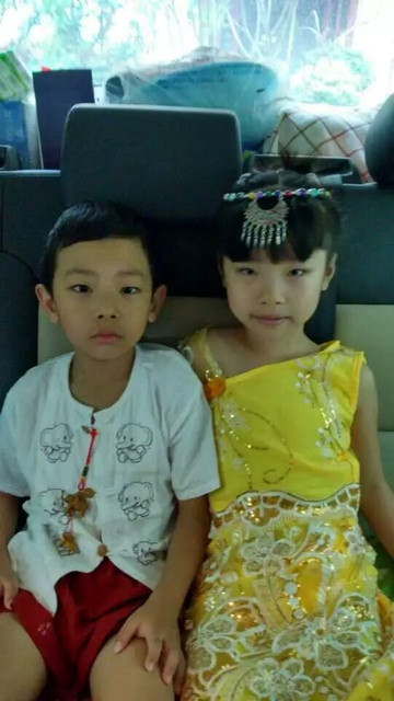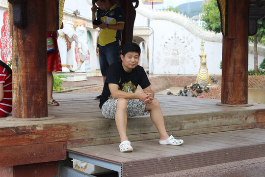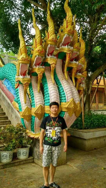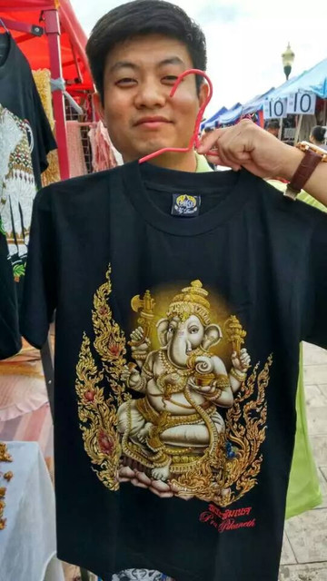 都吃的不亦乐乎啊,夜市上买的泰国版衣服,入乡随俗啊,佛光普照,呵呵。