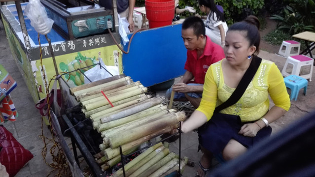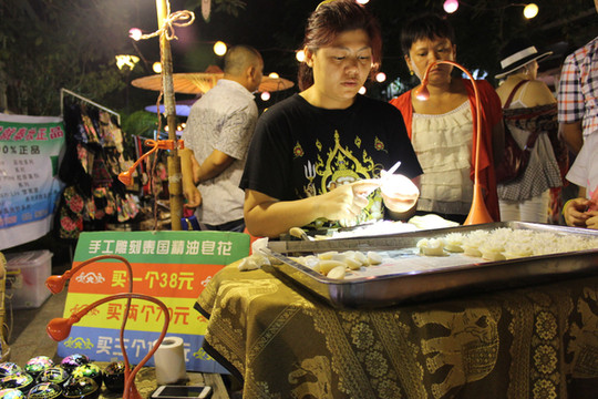 第三天,睡到醒在起来,四处转了一下,版纳的黑的时间比较晚,到晚上8点才渐渐天黑,晚上去滨江公园(澜沧江附近)吃小吃购物
