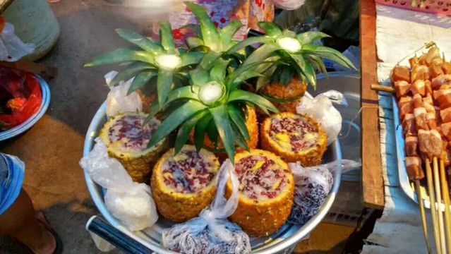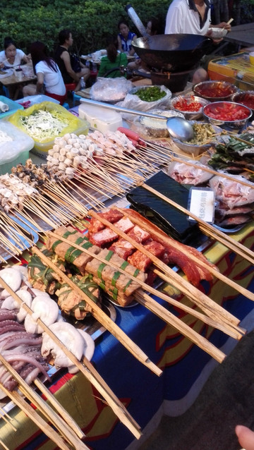 滨江公园小吃,购物。版纳的小吃不错,适合湖北人的口味,鲜榨水果汁很给力,烤肉也很好吃,好友很多泰国小吃,另外他们那里有个罗菲烤鱼很不错,长得像我们的鲫鱼,但鱼刺比鲫鱼的少的多,味道不错,另外,版纳的烤鸡都不大,猪肉也不大,都是土生土长的,味道很好。