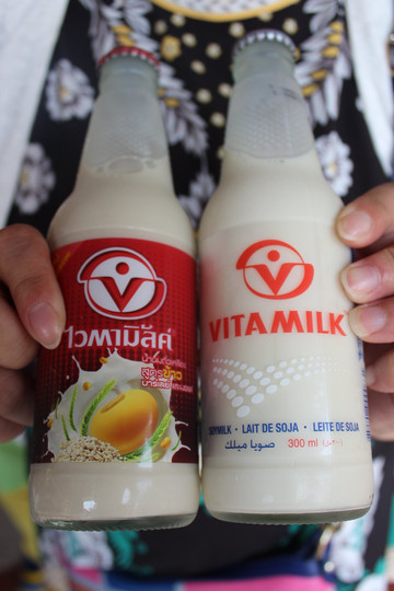 要说说这个豆奶。泰国进口的,味道很不错,景区价格6元,市内价格4元,大家都很喜欢喝,我开玩笑说搞2件回去,给儿子老婆喝,结果走的时候,被我们发现批发的位置,66元/件,果断决定,上货,拖回武汉,比网上买的99一件还便宜,据了解,泰国、老挝、缅甸的货只能发到版纳,再远就发不了。呵呵。