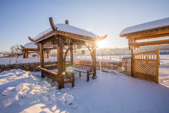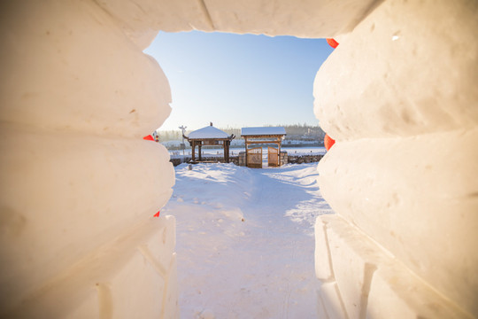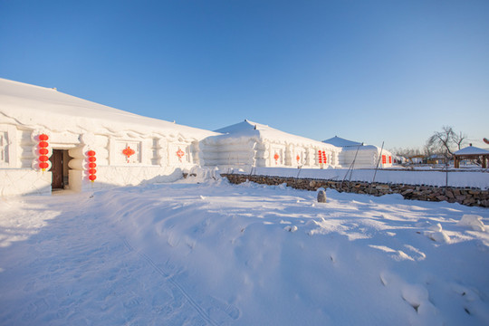 整个院子都非常有特色,雪屋、红灯笼、 中国 结、被雪打弯的树枝,你想要 东北 风格这里都有!