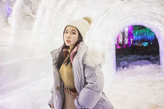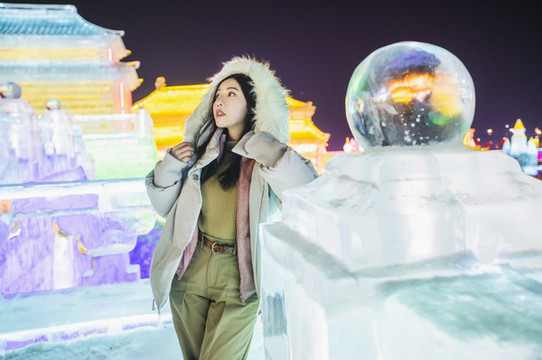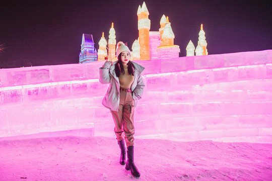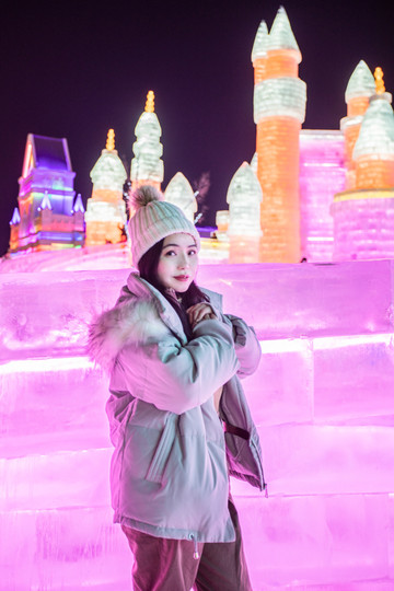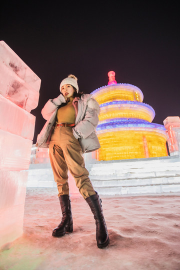 晚上来看冰雕当然是最合适的,璀璨的颜色衬托出冰清玉洁的世界,但是一定要多穿衣服,不然长时间在室外真的会冻坏的。晚上零下20度左右,我穿了打底内衣+毛衣+抓绒衣+羽绒服,裤子穿了三层,在冰雪新天地呆了一个半小时,基本没问题!