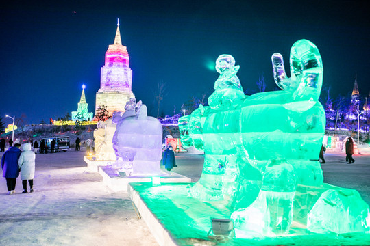 酒足饭饱后,今晚的重头戏是去 长春 冰雪新天地看冰雕啦。