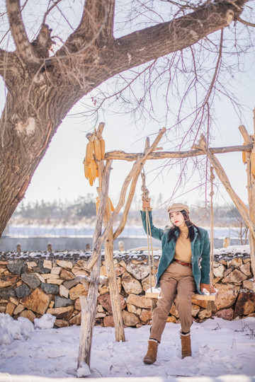 院子里还有挂着玉米的秋千,大冬天里夜来荡个秋千吧~