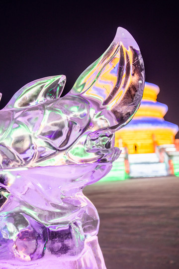 往里走就能看到各式各样的冰雕作品,例如祈年殿旁边的十二生肖,真的是晶莹剔透而又唯妙唯俏。