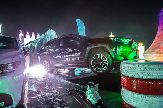 冰雪新天地里也有一汽丰田的展台,在璀璨夜色下释放更多活力。
