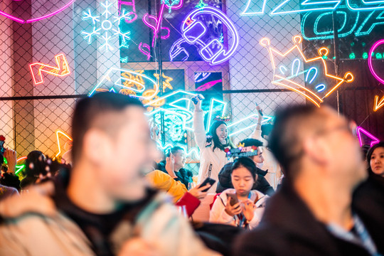 冰雪新天地的夜晚是特别嗨的,因为这里居然有户外蹦迪!