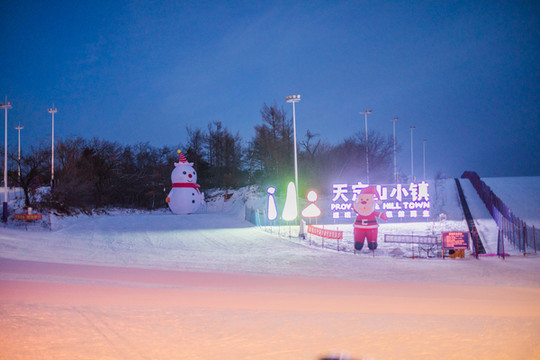 乘着传送带到初级道山顶,可以看到不远处的冰雪新天地,那是我们今晚要去的地方。
