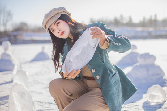 在冰冻的河面上晒晒太阳,抱起一块冰块拍拍照,这才是 东北 的感觉呀。
