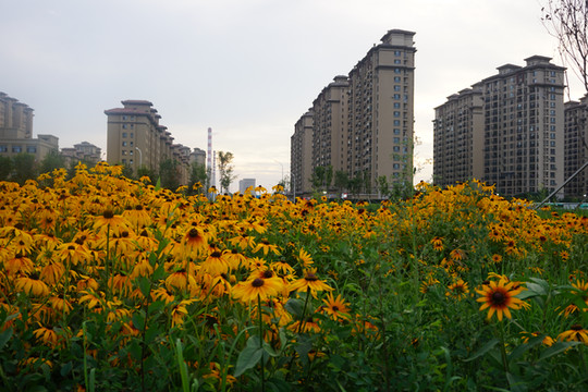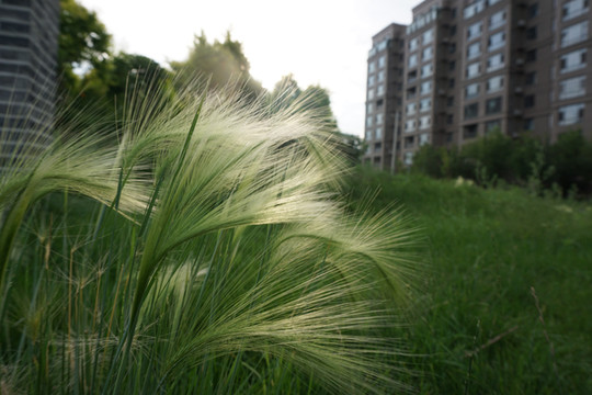公园里生机勃勃,树木,花草都是年轻勃发的。