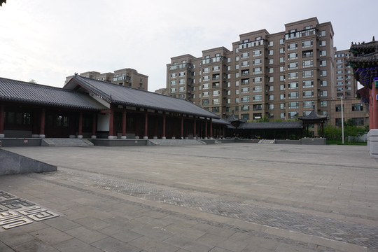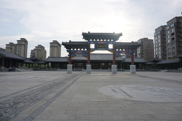 有一个大大的广场,广场上屹立着一个标志性的牌坊。