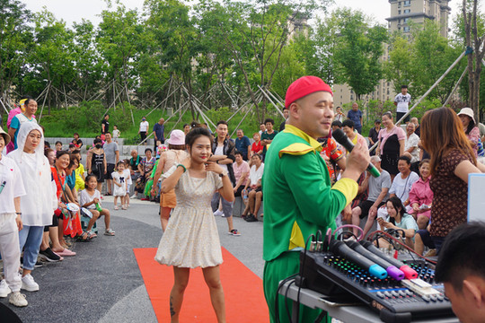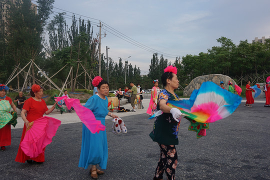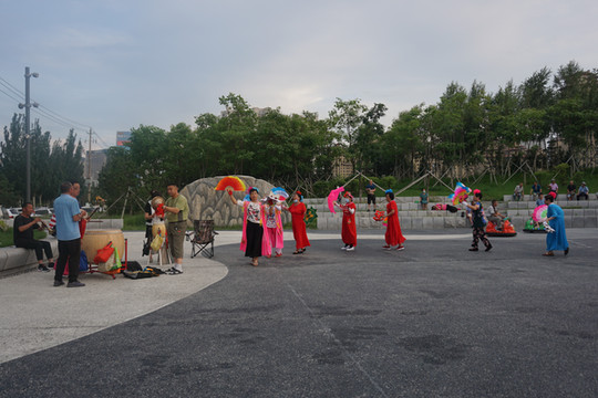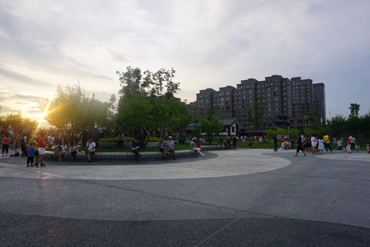 夕阳下欢乐的市民广场,活动,纳凉,看节目都不耽误。