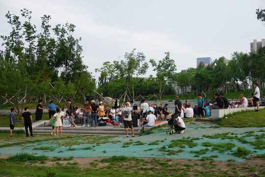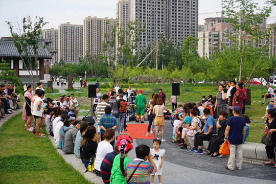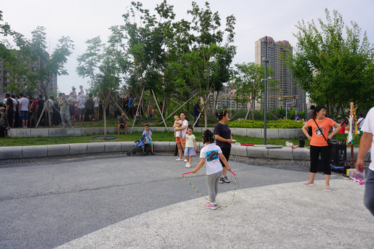 市民的公园一定是有市民的。搭建起的小蹦床上孩子是欢快的。