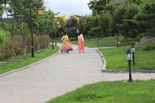 园内有好多穿着朝鲜族服装的美女,但都是游客租了衣服用来拍照的,也是一道靓丽的风景