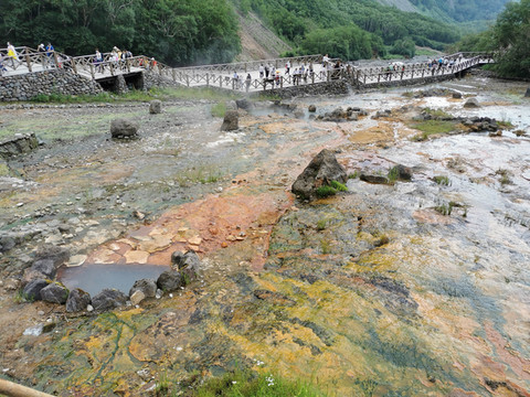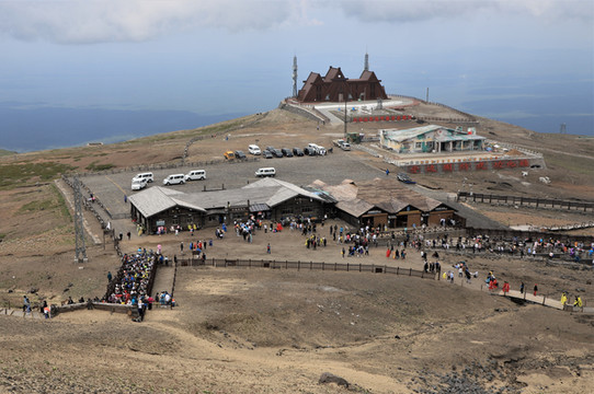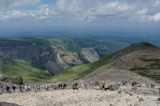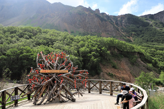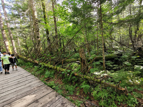 2021-7-31 早6:20 司机隋师傅就来酒店接我们了,还带了肯德基的早餐,好感动。一辆白色SUV车,加上司机一共四人,坐的超舒服,隋师傅兼导游全程为我们服务,一路上讲解他们延边自治州的风土人情及长白山游览的要点。9:00我们到达了长白山服务区,车程约2个半小时。然后依次排队坐环保车(大巴),再排队买倒站车票,坐上10人一车的小型车,经过许许多多的十八弯到达的登顶口,为了控制山顶的人流,还得在蛇形栏杆处排队,到达主峰已是11:30了(在这里不得不夸下长白山景区的管理能力,尽管排队时间很长,但次序井然)。