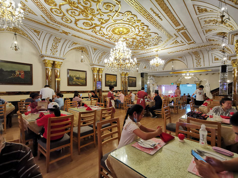 晚餐回到中央大街上的华梅西餐厅,餐厅创始人为俄国犹太人,2011年被评为中华老字号,为哈尔滨消费人气榜前三,也是此行必吃的店