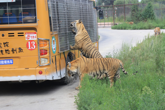 我们坐上园区的汽车进入虎园