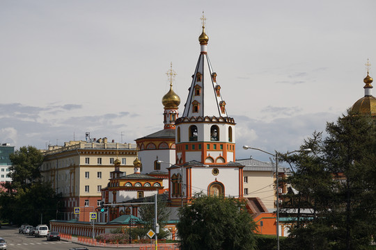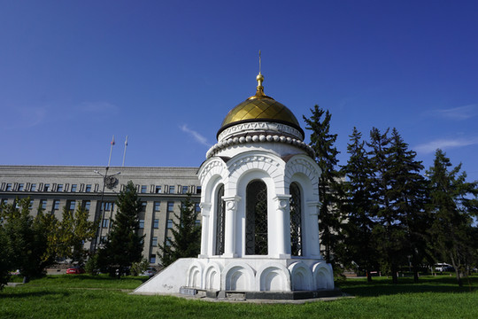 救世主教堂——是它的主要名胜之一。这是城市中最古老的石制建筑,也是整个西伯利亚唯一的东正教教堂,其墙壁的内外都有装饰画。教堂的著名之处还在于其壁画,不仅仅有圣像,而且还有伊尔库茨克的历史场景。现在,这座建筑中设有地方史博物馆。这个小亭是伊尔库茨克建城纪念亭,这块石头可能是奠基石。