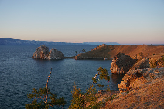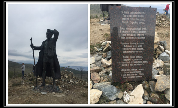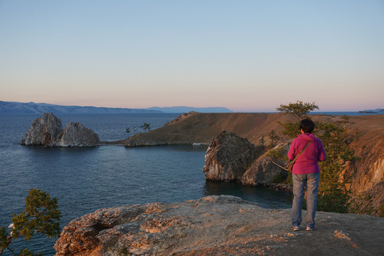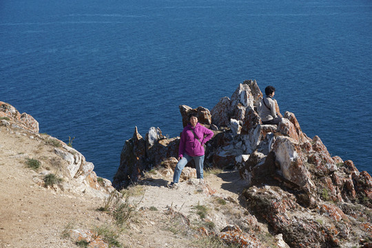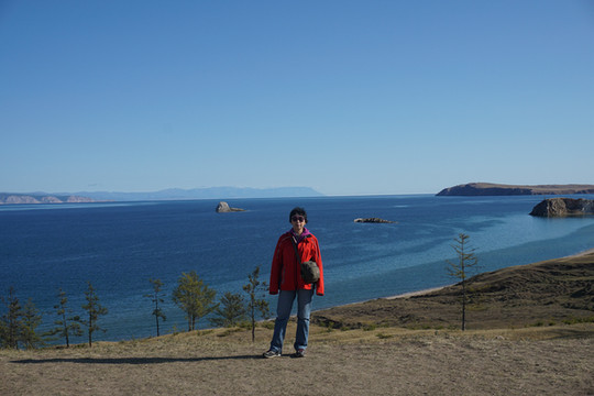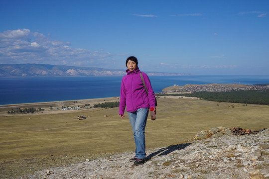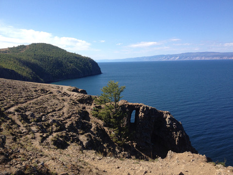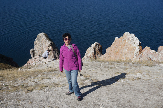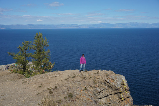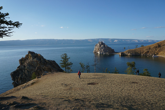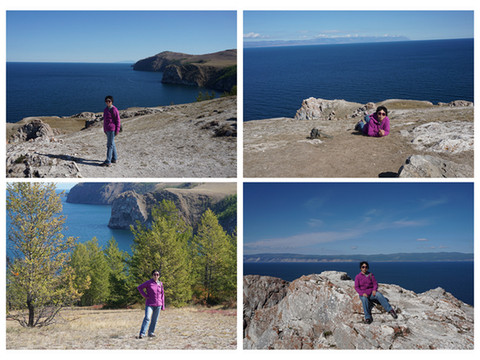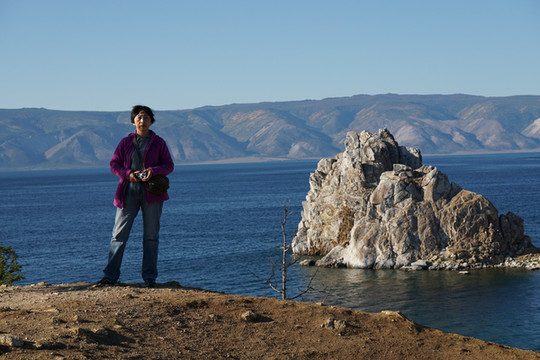 这是北线的景致鳄鱼石,远处碧水兰天连成一片,隐隐绰绰的群山拥抱着贝加尔湖,怎是一个美字了得!