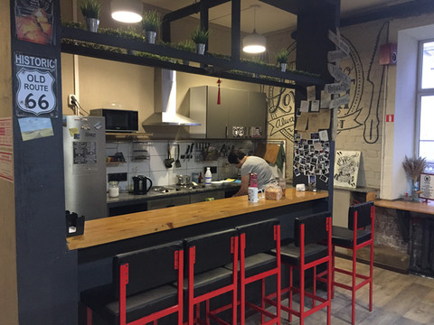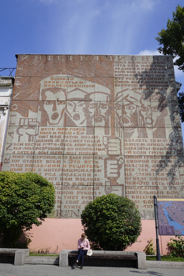 这个黄门里面就是滾石旅舍,地处市中心,图中前面的大街就是卡尔、马克思大街,向左一拐,直通安加拉河边景区。距离去贝加尔湖的汽车总站也就二十分钟路程,非常方便。