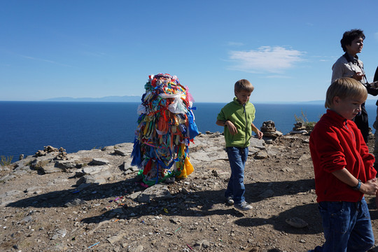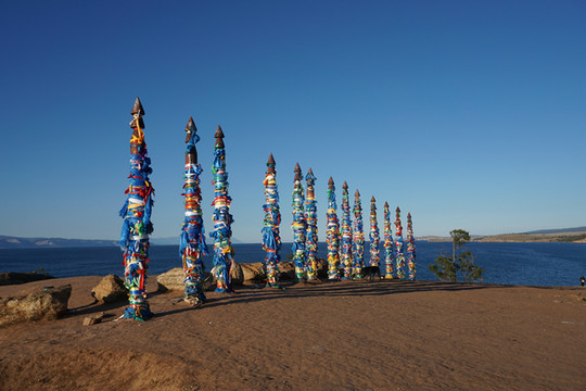 到贝加尔湖一定要去奥利洪岛。贝加尔湖有22个岛屿,其中奥利洪岛是最大的岛屿。从地图上看,奥利洪岛处在贝加尔湖中部。它长约71公里,宽处有15公里。面积约700多平方公里。俄罗斯人称其为“神秘岛”。贝加尔湖被称为是西伯利亚的明珠,奥利洪岛则是明珠的心脏,传说这里是湖神的仙居之所。奥利洪岛还是萨满教五大圣地之一,一直被视为俄罗斯北部萨满教的中心。岛上布满许愿用的彩带,萨满教氛围很浓。胡日尔镇是岛上最大的镇子,坐落着鳞次栉比的格式小木屋,保存着完整的民族传统和独特的民族特征,弥漫着俄式乡村氛围。岛上的居民以布里深亚特人为主,这里一半是原始森林,一半是草原,还有沙漠。岛上没有修路,保持着未开发的原始状态,土路被车轮碾压出深深的车辙,车走在路上非常的颠簸。故不能走大车,都是最多只能坐七个人的小车。我们以后报了南、北线一日游都是坐的另外一种小车,俄罗斯这种小车特别耐用,冬天有雪都不误车。它足以胜任西伯利亚的恶劣条件,那国的车都不如它扛造,俗称’’土坦克”。