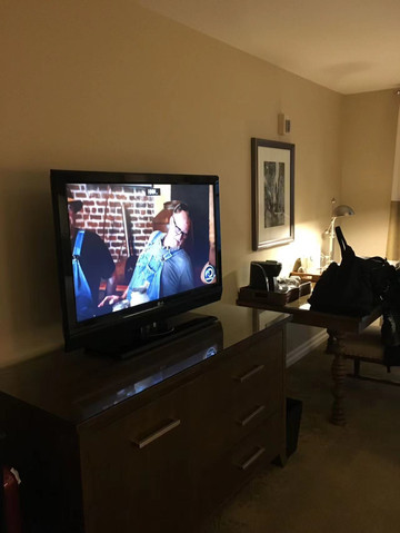 晚上入住town and country酒店是此次美西行最不喜欢的一家了,当初网上看觉得酒店很大应该挺不错,结果房间小的不得了,估计连国内的如家都比它大吧,隔音也不好,隔壁房也是国内来的,晚上说话声音大得不得了,我们只能敲墙壁提醒他们,哎...真心告诫大家不要选这家。由于到的时间晚,人也有点不舒服就没出去在酒店内用餐,结果也不好吃。停车地方倒是非常大,和前台说开车来的,会给你张凭条,进出就不收费