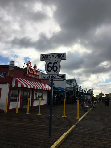 离开美丽的小镇又驱车去了圣巴巴拉海滩和圣莫妮卡海滩,66号公路尽头打了个卡。
