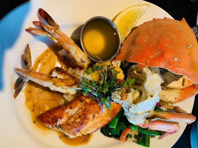 午餐在old fisherman,这家牛排很好吃,甜甜的口感,适合我们上海的口味。美国主食量大,三个人点了3个主食,结果那份三文鱼意面都没吃完,实在是吃不了。大家如果不是胃口特别大的话,3个人点2份主食就真的够了。