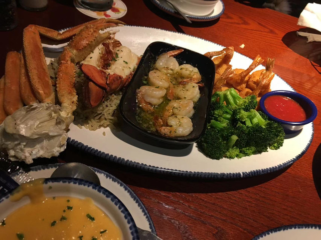 来了美国,就是吃龙虾和牛排的,所以继续搜,搜到了国内也已经开出来的red lobster,喝到了超级咸的龙虾汤,老公心黑点了个bowl结果只碰了一口全浪费了,后来想想其实我们可以让他重做的。