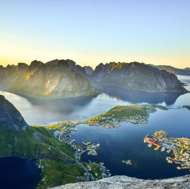 然而仅仅平视欣赏雷讷还不够,从高处俯瞰整个渔村全貌更是一种享受。布林根山脊虽不是罗弗敦群岛众多山脉中的最高峰,但是其壮观顶峰景色却足以弥补海拔相对较低的不足,是挪威最美景点之一。