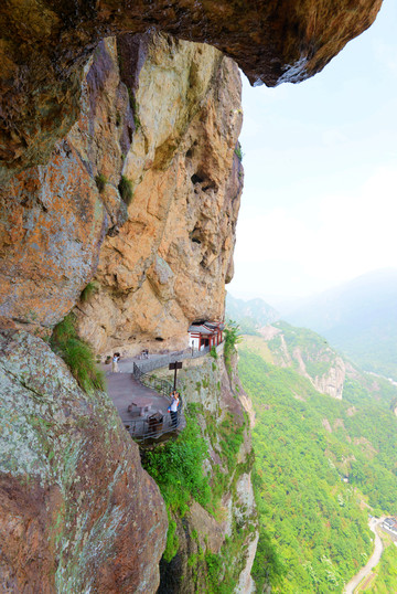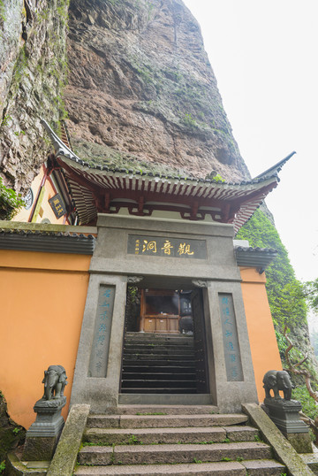 观音洞倚山而建,九层楼阁与天然洞府完美结合,就深藏在合掌峰中。这里常年香火鼎盛,踏过403级逶迤的石磴,俯视洞下,直落千丈,便远离红尘。