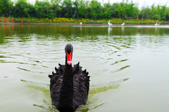 湖中的黑天鹅见我走到湖边,欢快地游到我身边,太可爱了。