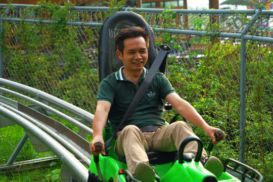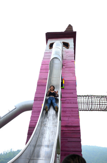 另一个王牌项目是“虎溜溜”,为亚洲最长的山体过山车,德国生产,全长1620米,直接坐在溜溜车里,拉你到虎头山山顶,1米3以上的人都可以玩。