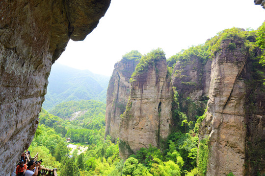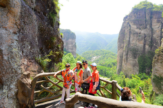 从灵峰古洞下山,过桥,来到了情人峰,这里是雁荡山人气最旺的地标了。