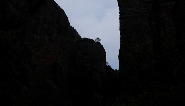 往出口方向再走一点,情人峰成了合掌峰,似双掌合拢,手心处留了条缝。