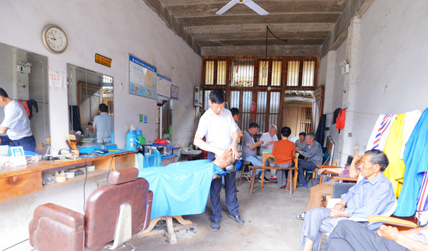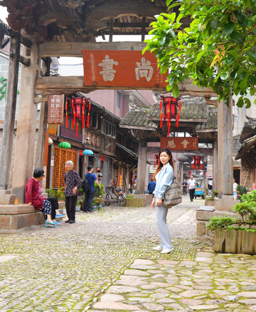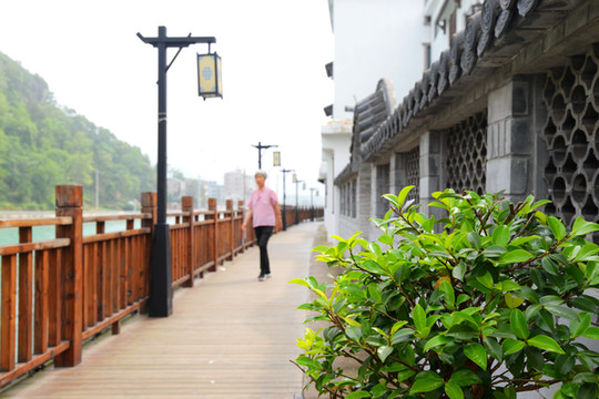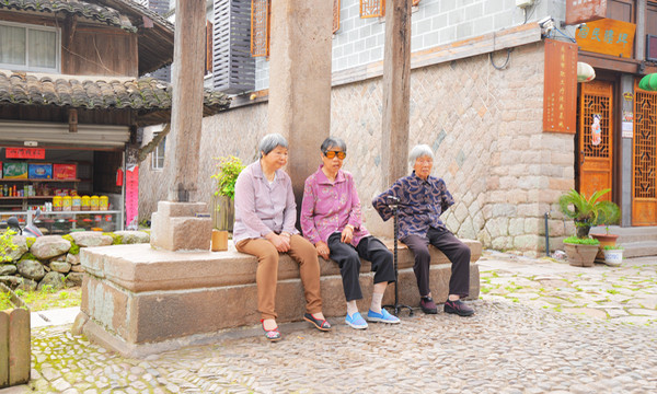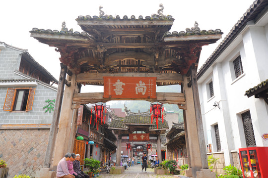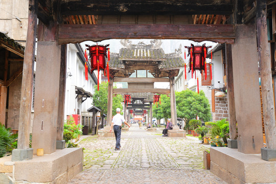 漫步在牌坊下的花纹路面上,日头将身前的影子拉得漫长,老人们聚在一块打发残年。