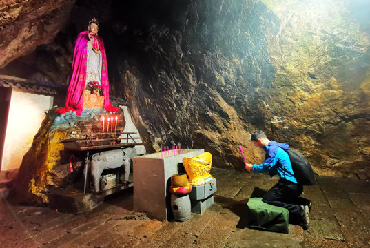 这回爬到洞顶了,烧香即在此处,观音保佑着几代人的安康和幸福。