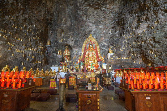 古人运用他们的智慧依洞就势,不改变它的洞形,在洞中兴建了九层楼阁,堪称巧夺天工。