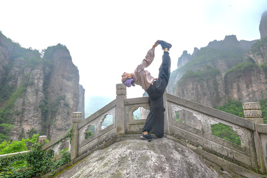 从来都是东风压倒西风,东、西瑶台相隔几十米,东瑶台上有位老大姐在练功,“包包糖”老师眼拙,说她才30多岁,明明六十了好吧。