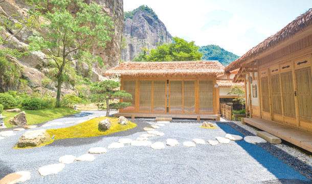 净名禅悦,由净名寺的显宝法师和祖成法师花了很长时间用心打造成的,是一个宋式院落,它背靠着奇峰异石,佳景天成。