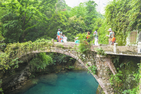 果盒桥是一座古桥,藤蔓缠绕,在电视剧里屡出镜,桥下就是凝碧潭,清澈见底,是《琅琊榜》取景地点之一,一帮大妈在桥上舞动着中国式的围巾。