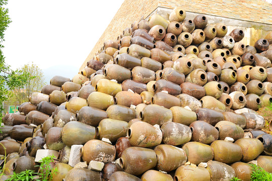 馆外有扇网红墙,用了千个陶罐垒成的。