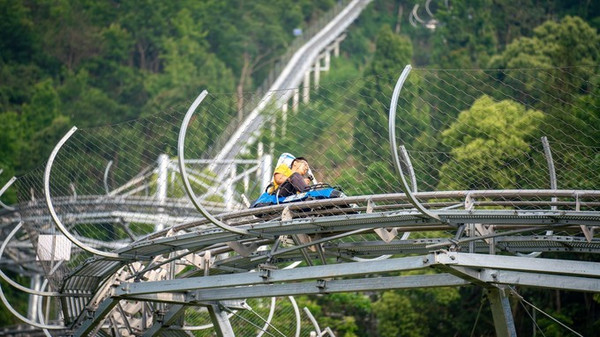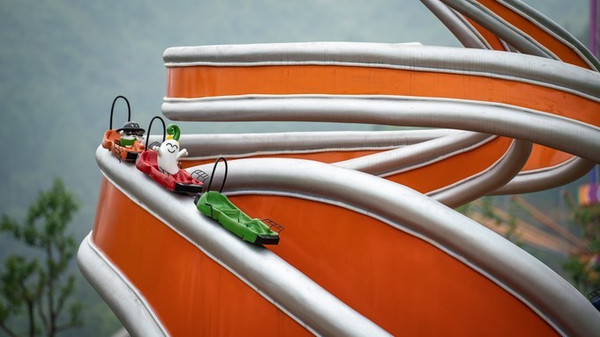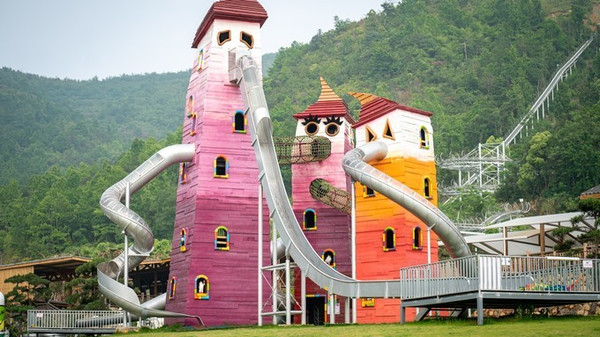 园内现拥有花海溜溜、世界风溜溜、虎溜溜、溜溜塔等66条溜溜滑道。虎溜溜是 亚洲 最长的滑轨溜溜,全长1620米,也是目前 亚洲 唯一拥有三立柱盘旋的轨道。过山车大家都玩过,那山地过山车的惊险刺激是来这里最值得体验的项目。滑道穿梭在百花海、百花林、百果园之间,陡坡、弯道的刺激体验让你挑战高度与速度的双重冒险。高达61.8米的溜溜塔也是 亚洲 最高的溜溜塔。溜溜塔一共有八层,这是一个存在于二次元之外魔法空间,悬挂式AR飞行影院、旋转木马、自由落体、动漫嘉年华、灯光秀、酒吧、球幕影院。在最高160米的溜溜滑梯入口就在最顶层的八楼。