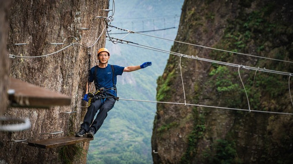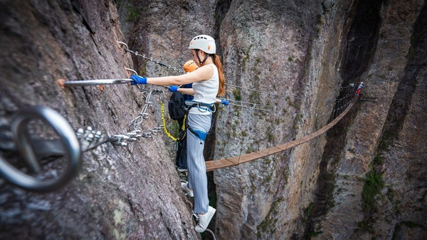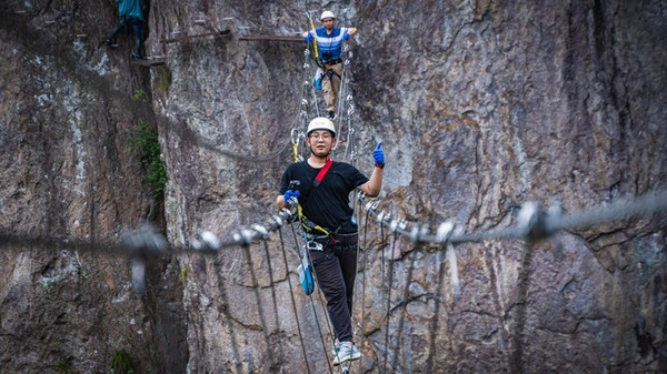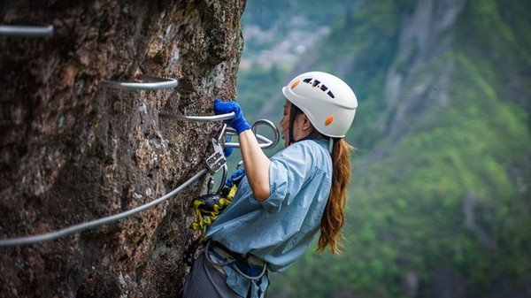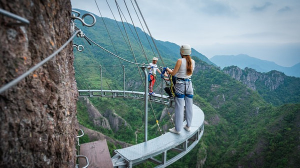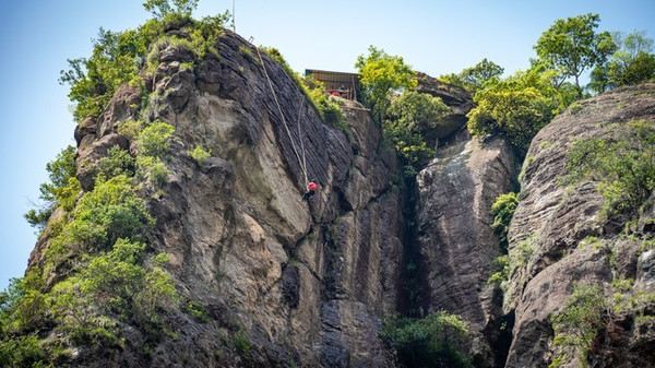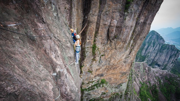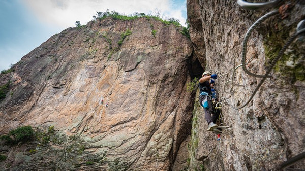沓屏峰,可谓是龙 西乡 的标志,千百年来,人们只能仰视它,却没有人能征服它。 雁荡山 飞拉达项目的开发,激发了人们对这座险秀峰峦未知的探寻。由于项目降低了对攀爬者的专业技术要求,使其成为一项全民均可参与的极限运动,游客从沓屏峰底部出发,曲折迂回、节节攀升,在体验野外攀岩惊险刺激的同时,还可感受恰如诗仙笔下“脚著谢公屐,身登青云梯。半壁见海日,空中闻天鸡”的唯美意境。如果你也想实现自己追逐攀岩激情的梦想,不妨去 雁荡山 飞拉达景区试一试。