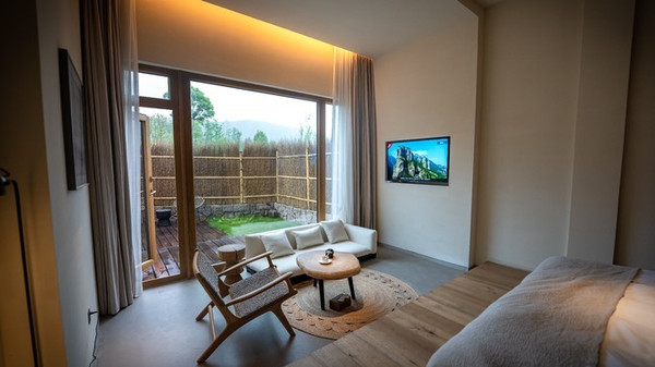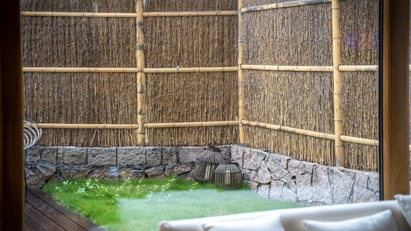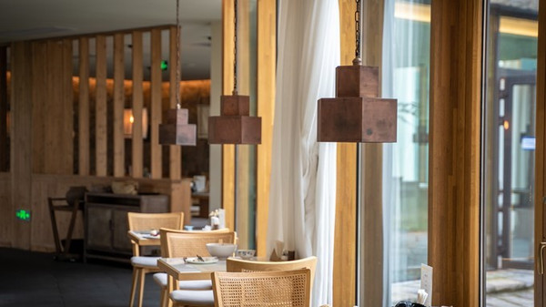 位于山林之间,所以装修风格以亲近自然为体现,采用本地木材,各类灯饰也被竹编外衣或者草木包裹起来,典雅中又透露着亲切,身处其中,远离城市喧嚣,回归山林之间,伴田野清风,入梦!