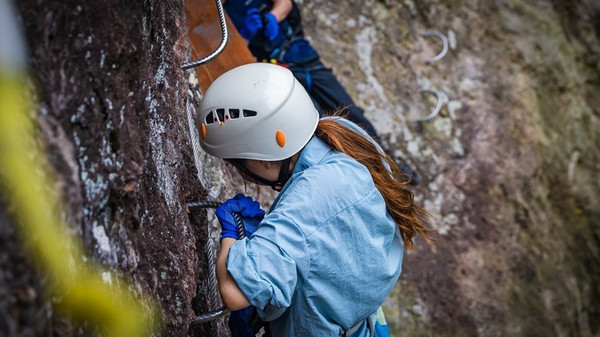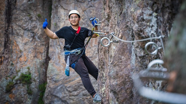 项目根据挑战的难度及线路的长短,主要分为A、B、C三条攀爬路线。A线长423米,起步就是垂直攀爬,适合体能和毅力都非常好的游客去挑战,也是三条线路中难度最高的。相较于A线,长900米起步平缓的B线则显得更为大众化,由于没有过于专业的技术要求,游客可以在欣赏美景的同时顺便满足一下自己的攀岩梦想。如果你对前面两条线路难以抉择,也不用担心,可以在仅有70米的C线试玩一下再做选择。