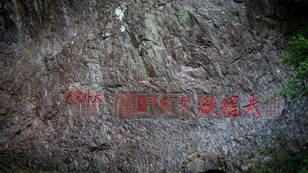 在“天下第一”高瀑的加持下,大龙湫景区内那异常丰富的人文景观,也更显无穷魅力且极具观赏价值。这里有为纪念坐化瀑前的 印度 僧人诺矩罗而修建的观瀑亭,有风光独到客忘归的忘归亭,有康有为为之亲撰榻联的龙壑轩,还有崖壁上20多处苍劲典雅的摩崖石刻。