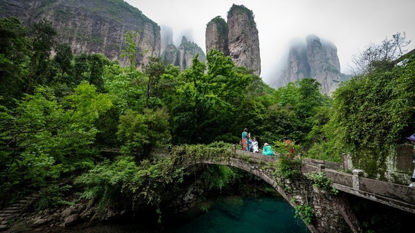 我们知道 雁荡山 位于有“东南山水甲天下”之誉的 浙江温州 ,它以“山水奇秀”而蜚声中外,是 温州 最早的5A景区,也是三山五岳中的“三山”之一,有“海上名山,寰中绝胜”之美誉。显胜门作为 雁荡山 著名的八大景区之一,一众“门”景之最,虽然不大,但却风姿绰约、景色超绝,这里青山碧水相映成画,自然人文和谐如诗,是 雁荡山 美丽的后花园。它位于雁荡的北部,处于三面环山的峡谷之中,放眼望去皆是奇峰异石、茂林修竹、幽潭碧溪,当年拍摄张纪中版《神雕侠侣》绝情谷片段,就是在此取的景,如今依旧有迹可循。沿着蜿蜒的山路,顺着曲折的清溪,便可领略这一寂静幽深的山谷秘境。