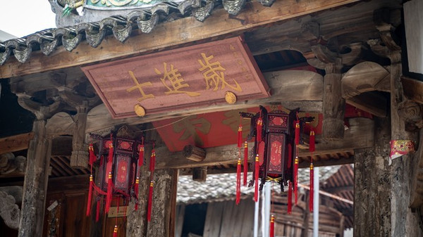 走进南阁之前,你会被村外这个背靠巍巍青山,面朝潺潺秀水,仿若浑然天成的水墨风景画一般的环境所吸引,但当你真正走进古村,你就会被眼前那一望千年的历史沉淀所惊艳。曲折迂回的街巷,爬满苔藓的垒石墙,老式的烟囱与房屋,这里的每一处痕迹,都透露着古韵遗风,诉说着历史变迁,哪怕是最不起眼的脚下铺路的鹅卵石,都能渗透出耐人寻味的故事。村内历史遗存丰富,文物古迹众多,主要有牌楼群、笃忠堂、尚书第、洗砚池、章纶墓等,其中当以牌楼群最为壮观。