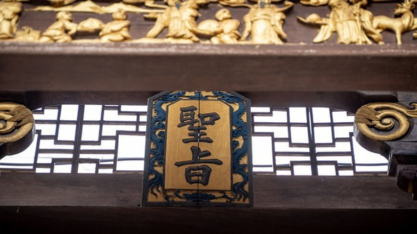据史料记载,雄伟古朴、肃穆庄严的南阁牌楼群原有七座,现仅存五座,分别为“世进士”、“恩光”、“方伯”、“尚书”和“会魁”。五座明代建筑风格的牌楼座均为三山顶六柱单间式结构,由两根方形巨大 石柱 和四根木边柱作为支撑,脊饰龙纹,恢宏大气,虽历经沧桑,却遗风犹存,始终彰显着百年间章纶一族四代三进士的辉煌荣耀。五座牌楼依次排列,坐落在仅百米之余的直街之上,街上红褐色的鹅卵石早已在几百年的人来人往中被磨得如玉石般光洁,让人忍不住联想到当年文官落轿、武官下马,皆步行而入的繁华盛况。